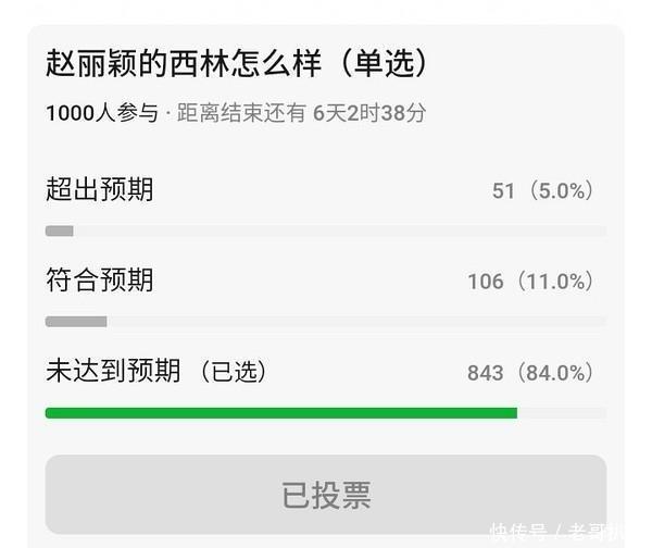 对于赵丽颖的演技问题,早前有博主作念过“赵丽颖的西林若何样”的投票,大多数网友都选定了“未达到预期”的选项。 还有网友放出我方心目中西林的形象,是马伊琍在《似锦》中的形态。