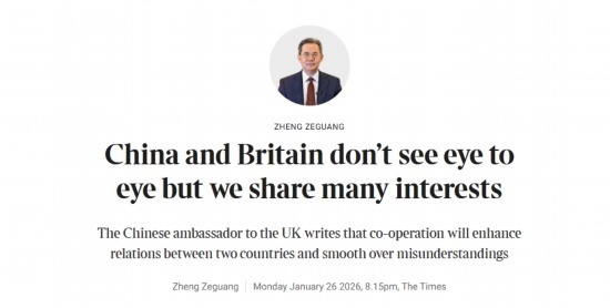 北京时辰1月27日,英国《泰晤士报》刊发中国驻英国大使郑泽光对于中英相干的著述,题为《中英之间虽存在一些不对,但更领有宽广共同利益》。该报的编者按称,中国大使指出,开展合作有助于加强两国相干并幸免歪曲。郑泽光大使的著述全文如下: